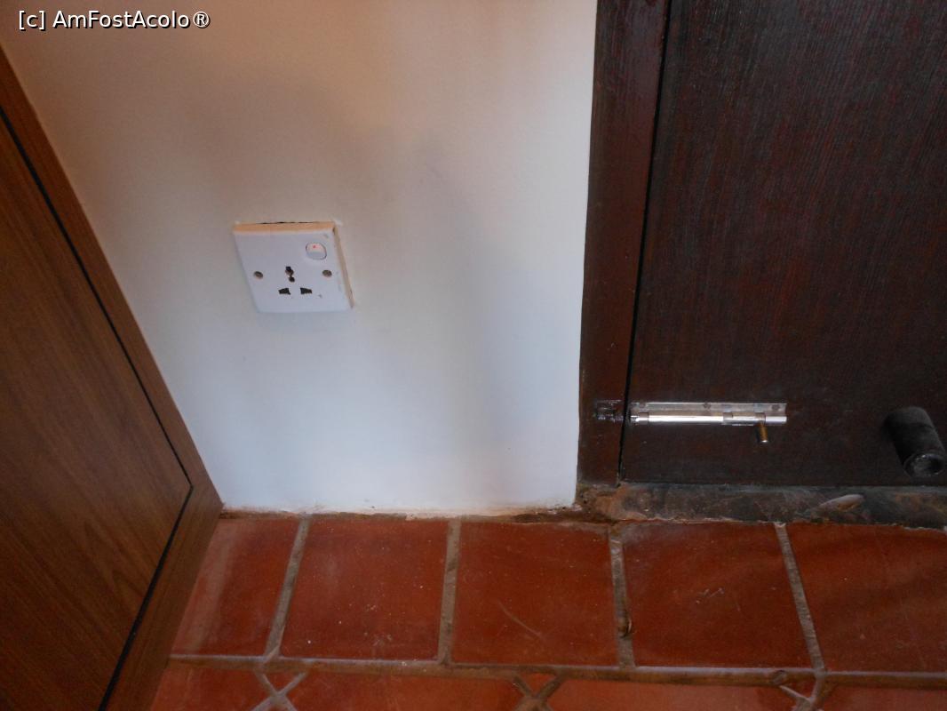 [P25] Nagarkot - Hotel Himalayan Villa. Camera 302, priză, întrerupătoare și nișă cu lumina de la pat.