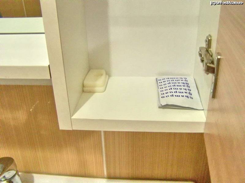 [P13] Dulăpiorul conţinea şampon la pliculeţe şi trei săpunuri nefolosite, care au fost înlocuite a doua zi cu unele noi.