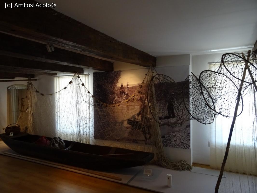 [P03] Unelte de pescuit și monoxilă în sala dedicată pescuitului - Muzeul Etnografic „Gheorghe Cernea” din Rupea.