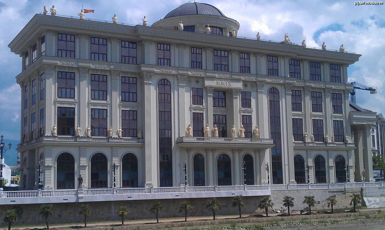 [P13] O frumoasă clădire în fața Podului Civilizațiilor din piața centrală a orașului Skopje, Macedonia (FYROM).