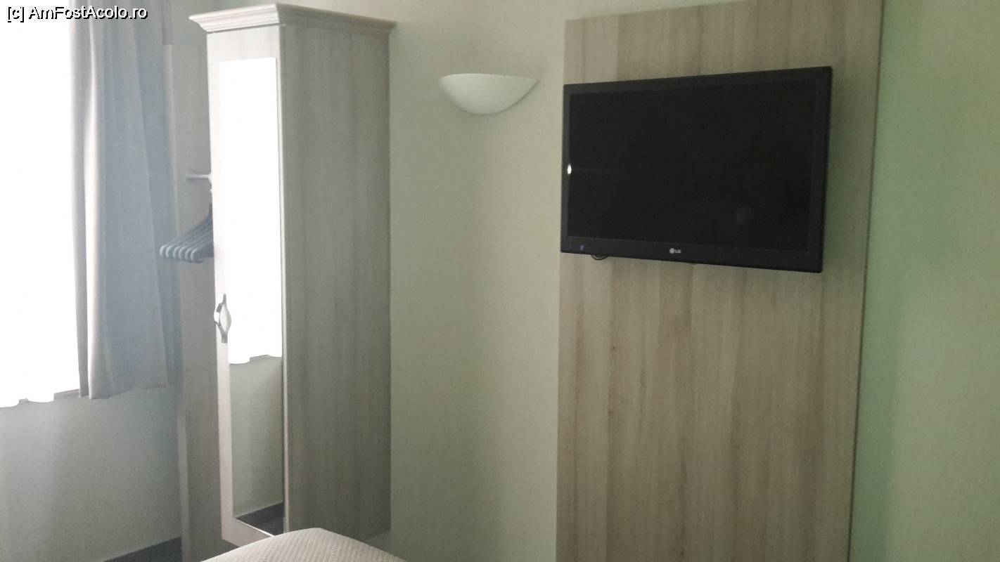 [P02] Partea din dreapta a camerei, cu dulapul, aerul conditionat, televizorul.