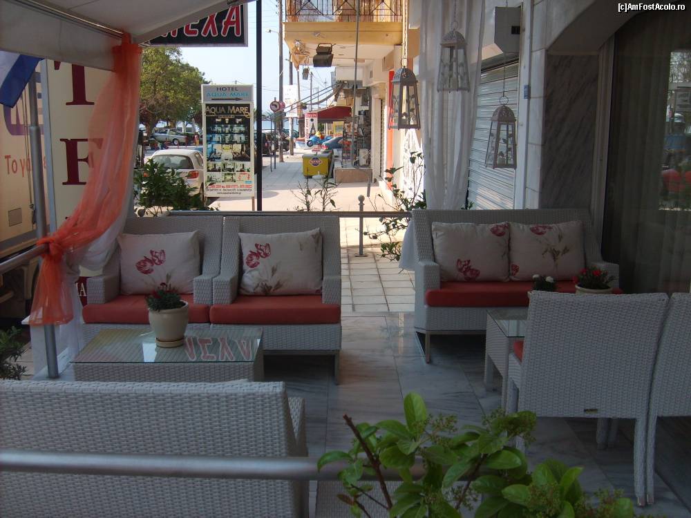 [P06] O mica terasa la una din intrarile in hotel Mallas 2*. Se vede un pic marea aflata la 50 m.