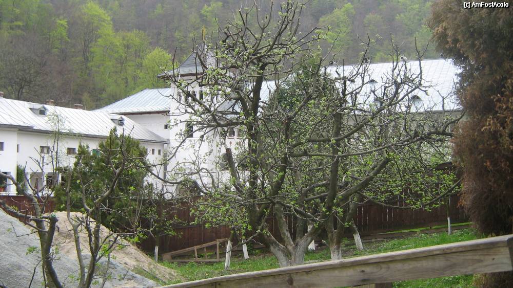 [P19] Mânăstirea Lainici - chilii şi câţiva pomi din curtea interioară