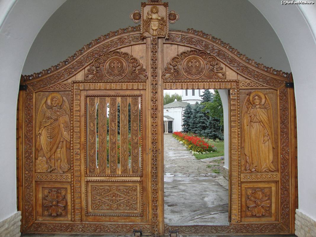 [P02] Admirăm frumoasa poartă prin care apoi vom intra în curtea lăcașului de cult.