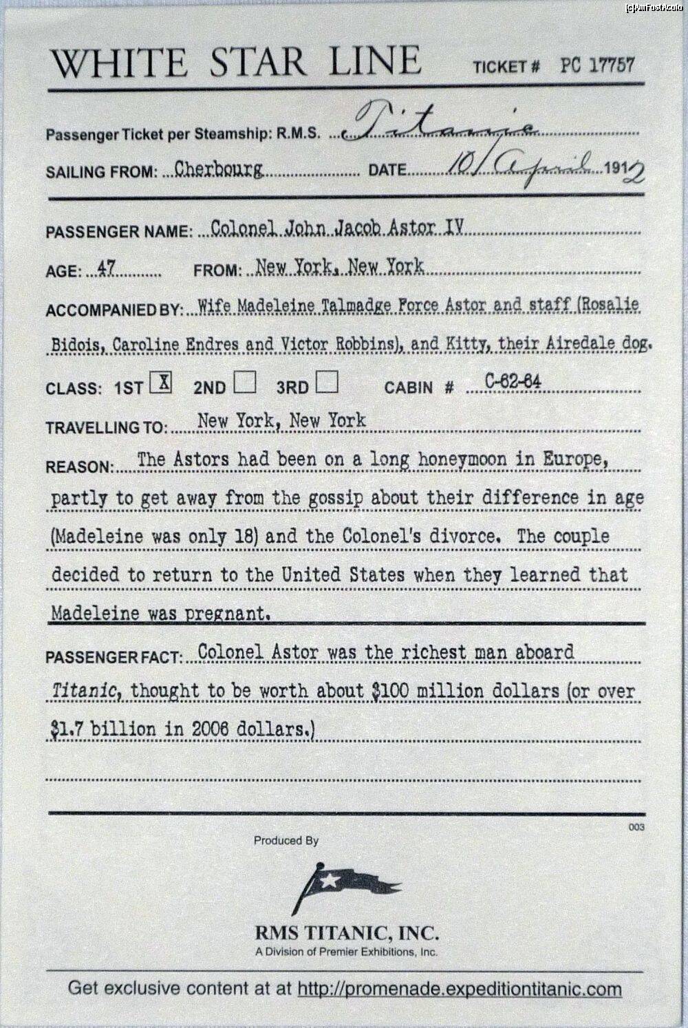 [P29] Titanic: The Artifact Exhibition - boarding pass-ul primit (faţă).