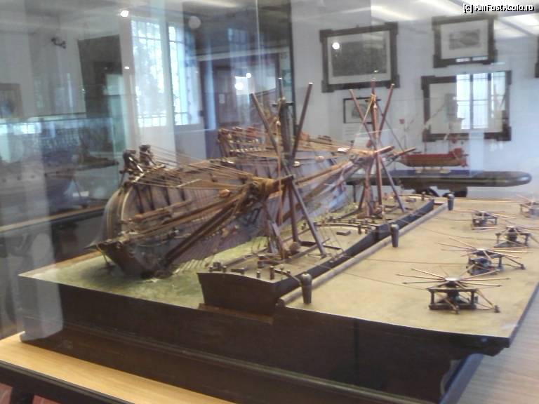 [P19] Venetia – Muzeul de istorie navala, in spate pe perete, o bucata din nava prezentata.