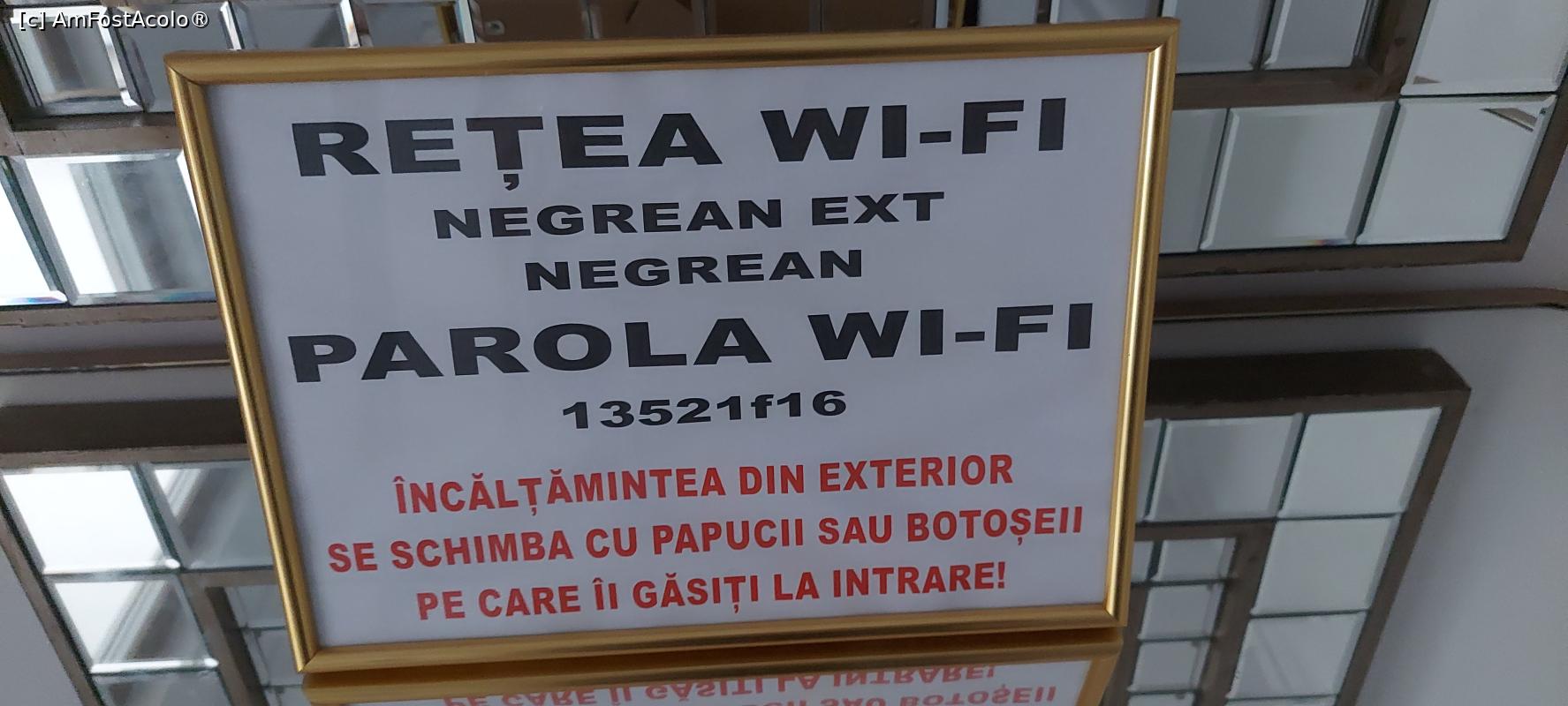 [P07] 7. Pe holul etajului unu, sub oglindă, este afișată paarola Wi-Fi.