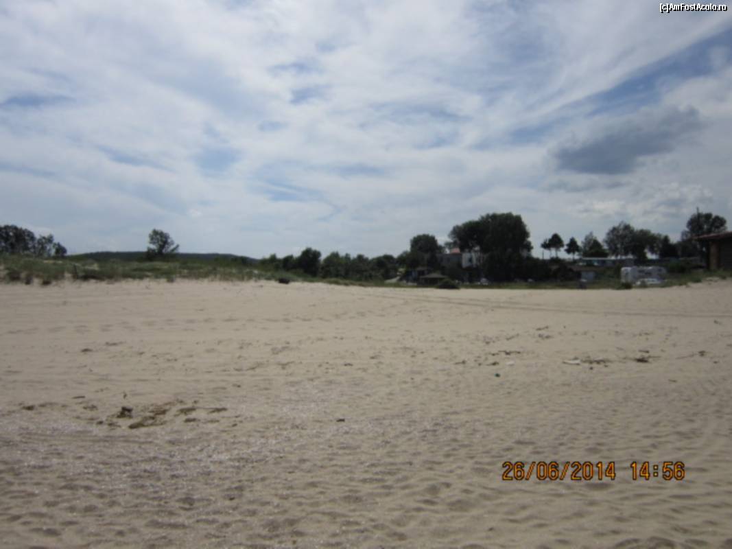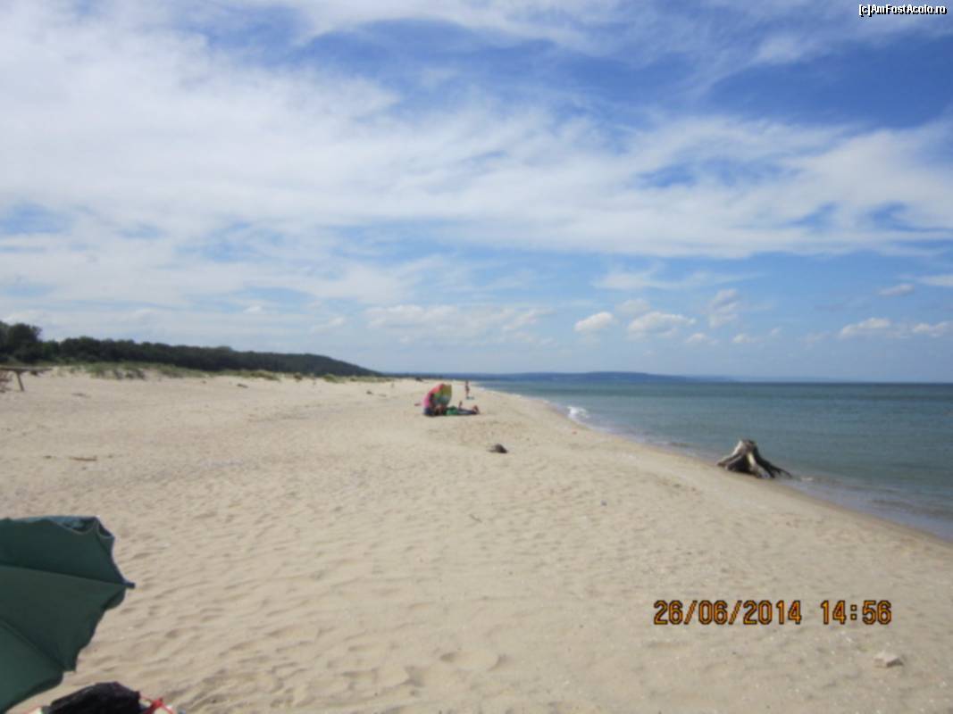 ![[P03] Cam asta este latimea medie a plajei, cu variatii de nivel si cateva palcuri de copaci care nu apar in cadru, inafara padurii care este deasa si umbroasa. In fundal sunt camioanele dormitor si aici se adunau persoanele de care vorbeam in review. La limita padurii este drumul. » foto by Albinoium