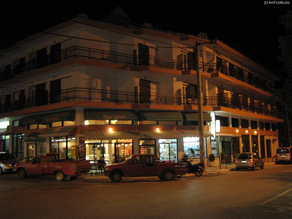 [P01] Aici este hotelul , pe timpul serii. La parter sunt cateva mici magazine si o terasa.