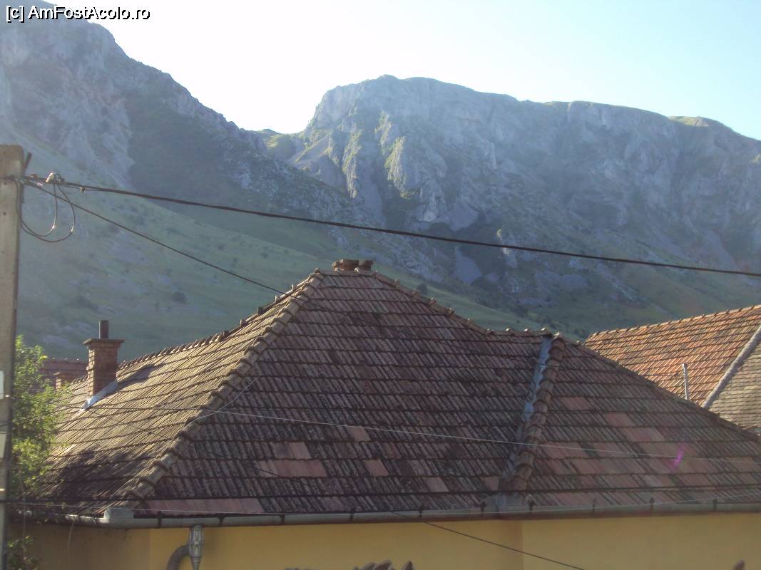 [P16] Pálinkás Panzió - priveliște din pridvor (Piatra Secuiului și Colții Trascăului).