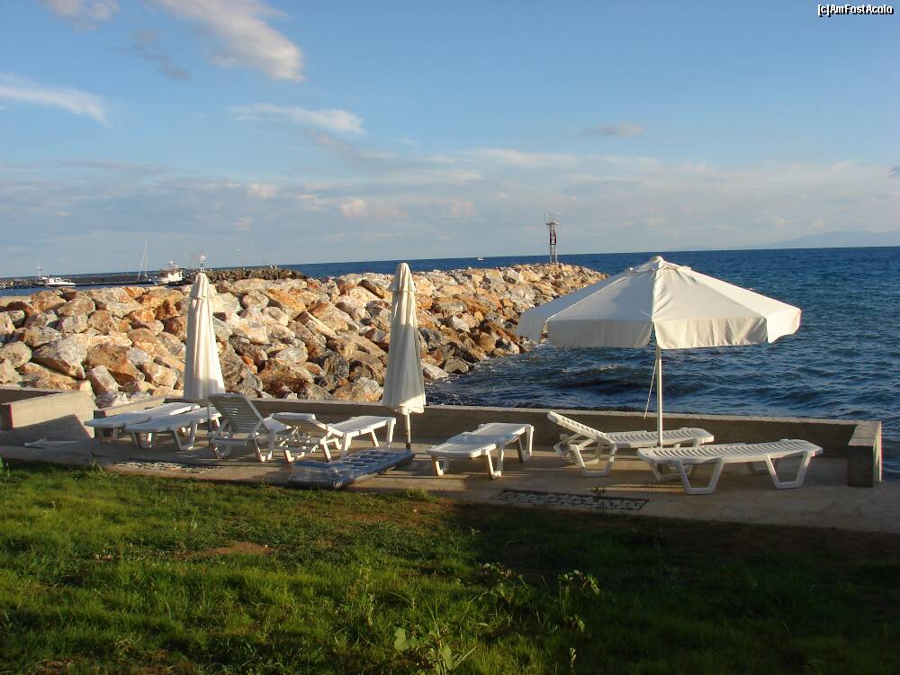 [P07] vederi de 5 stele (sezlongurile pensiunii si marea din fata)