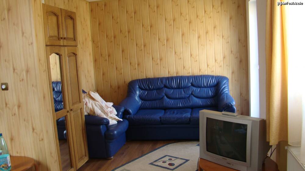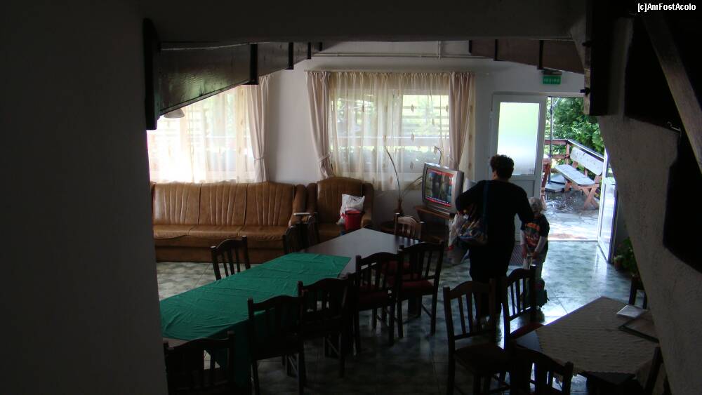 [P21] Sala de mese -livingul, pe usa deschisa se observa mica terasa a pensiunii.