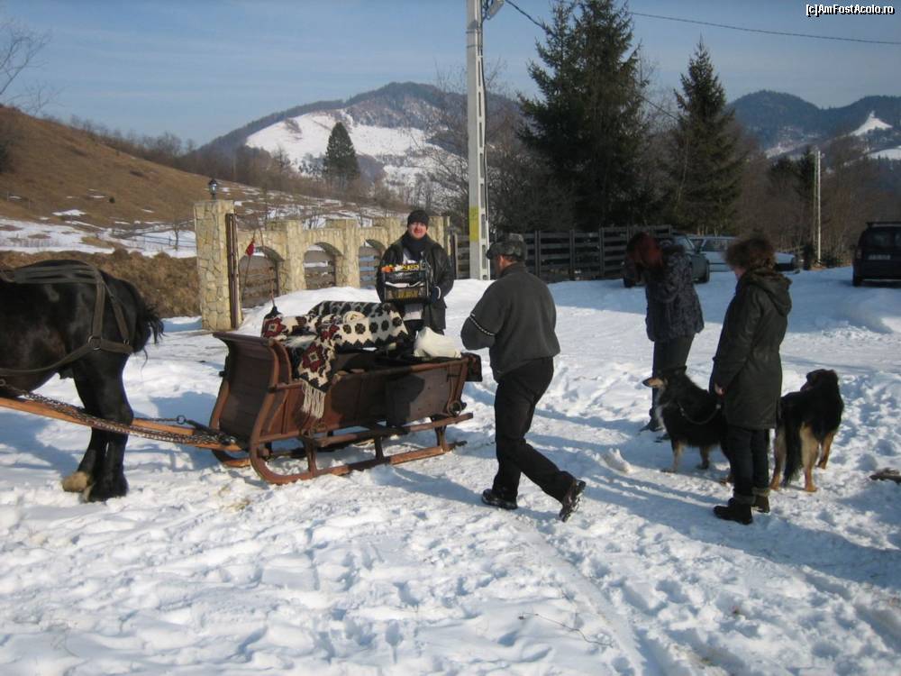 [P01] Am gasit si o poza din Martie, cand am fost cu sania la gratarel. Am primit tot de ce aveam nevoie de la Doamna Dorina (tacam, vesela, carbuni, lemne, carne preparata, tuica fiarta).