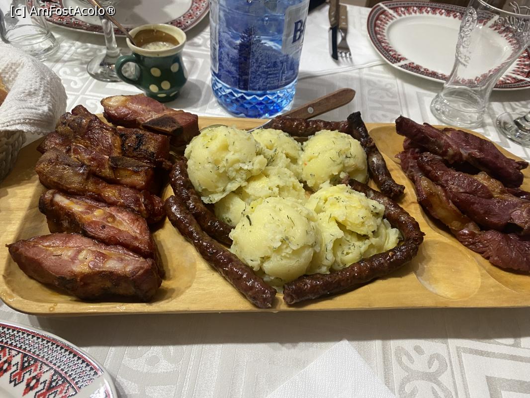 [P68] Pensiunea Melania - cina cu cartofi, carnati de Plescoi, pastrama si coaste