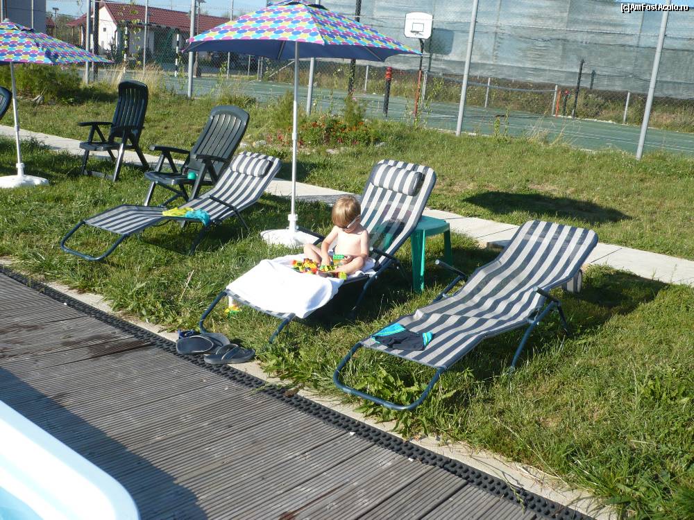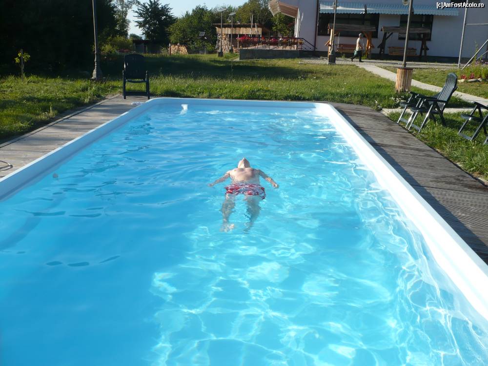 [P05] Piscina (in partea dreapta, in fata foisorului) are o latime de 5 scaune. Lungimea se poate aproxima...