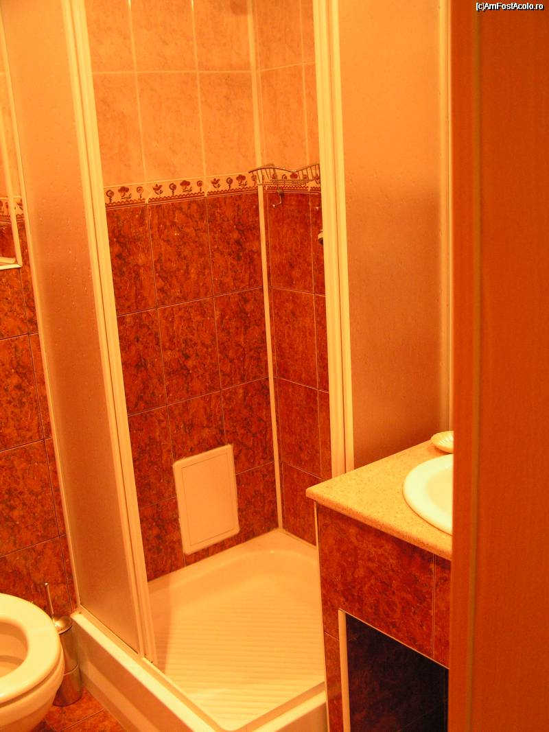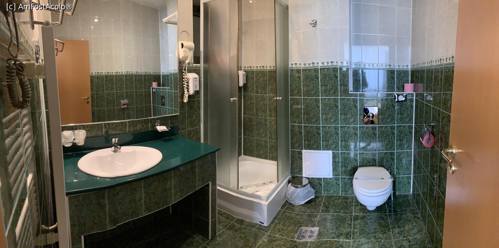 [P05] Baia spatioasa. Exista consumabile (unele incepute) si uscator de par. La dozatorul din cabina de dus lipseste sapunul lichid. Peretii cabinei de dus sunt desprinsi existand riscul de accidentare.