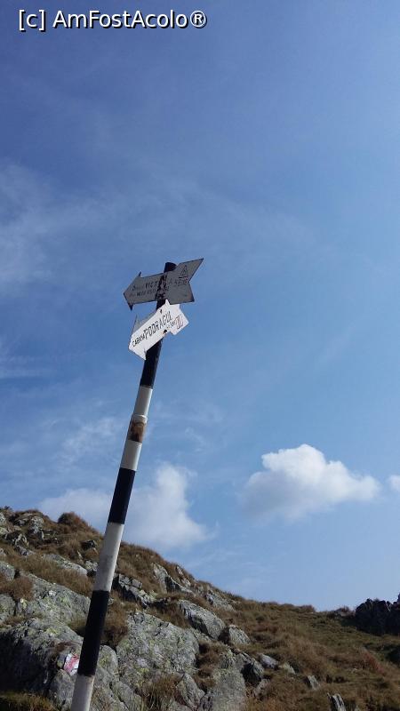 [P08] Indicator turistic in Portita Vistei. Spre Varful Vistea Mare (si Moldoveanu) marcaj banda rosie