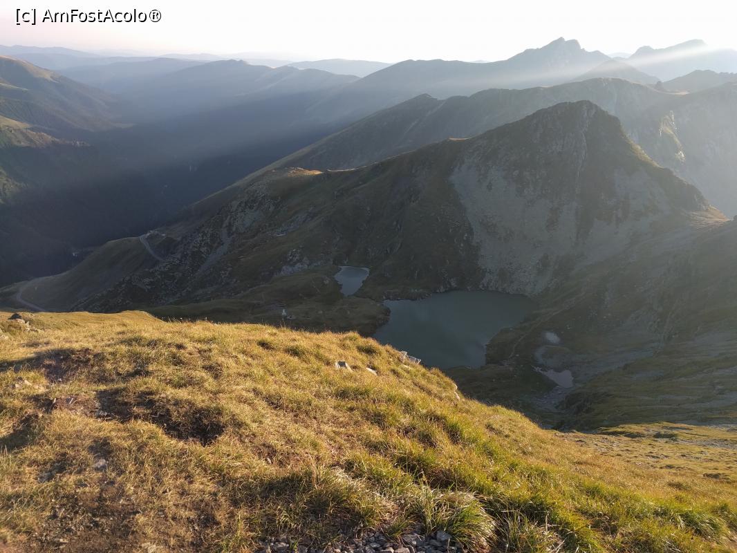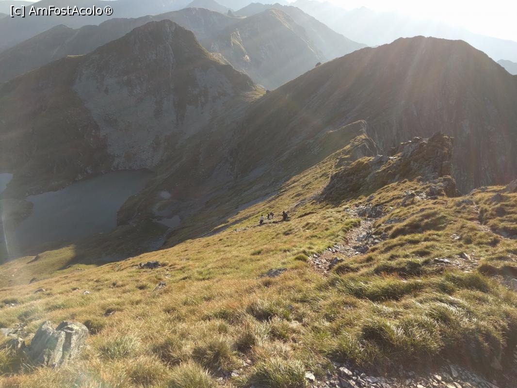 [P04] Pe creste abrupte spre varf, cu lacul Capra in spate