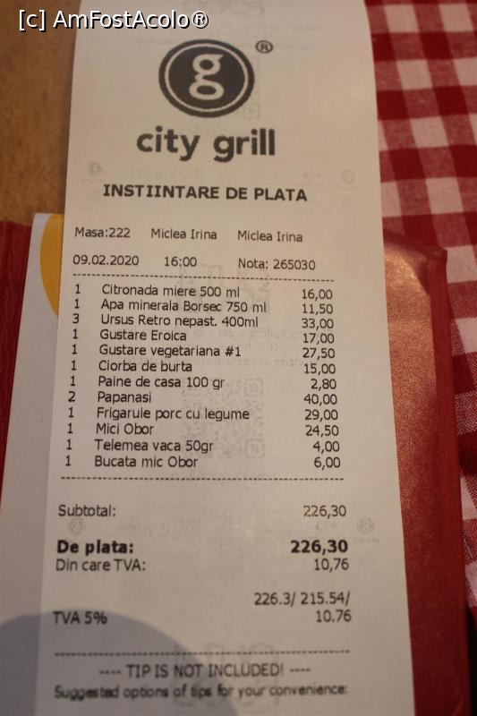 [P19] București, Restaurantul City Grill Covaci, Nota de plată