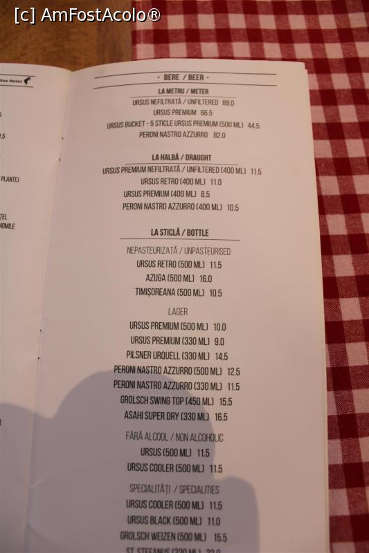 [P27] București, Restaurantul City Grill Covaci, Meniul, Bere la sticlă, halbă (pahar) sau metru