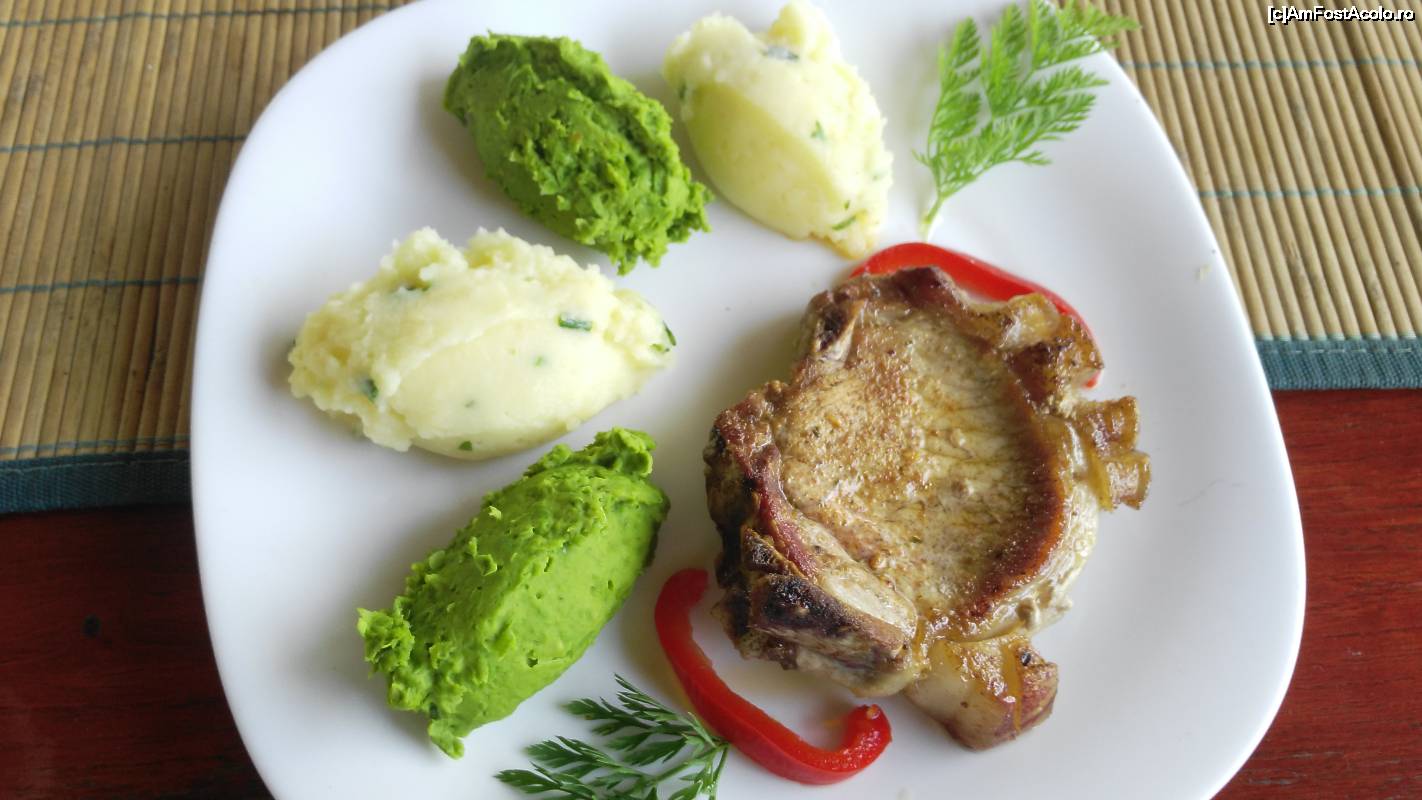 [P13] Restaurantul Milenium Mădăras - porţia de cotlet cu şoric şi duetul de piure.