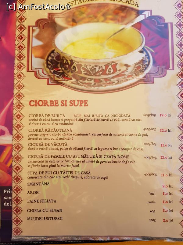 [P26] Meniul de la Restaurantul ”Cascada”, Slănic Moldova - ciorbe și supe.