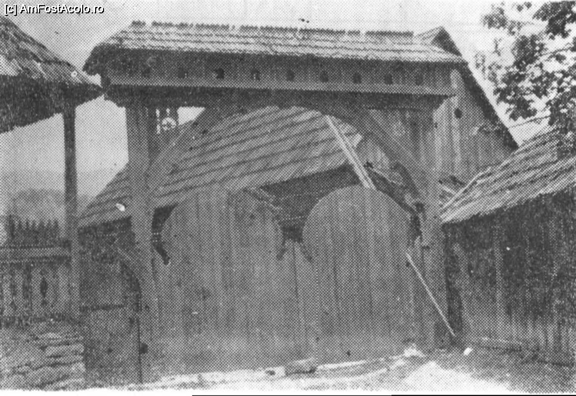 [P17] Fotografie de epocă cu o poartă țărănească românescă din satul Poiana Uzului