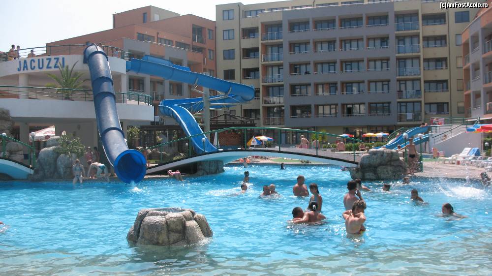 [P06] O alta parte a piscinei in care se vad podul si toboganele