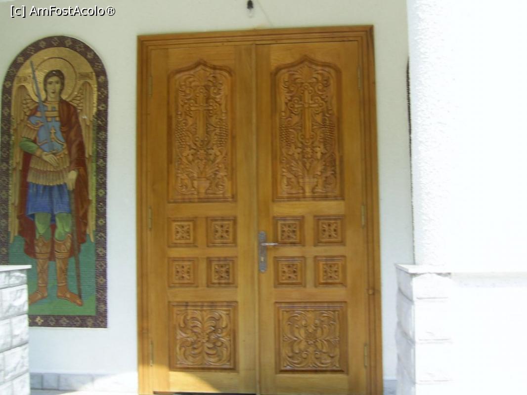 [P12] Mănăstirea Măinești - Biserica nouă, ușile din lemn sculptat.