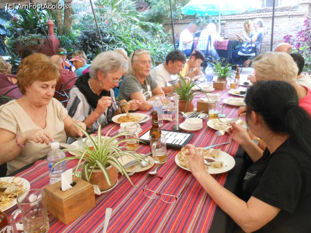 [P11] Bhaktapur - New Watshala Garden Restaurant din Durbar Square. Grupul nostru la masă.