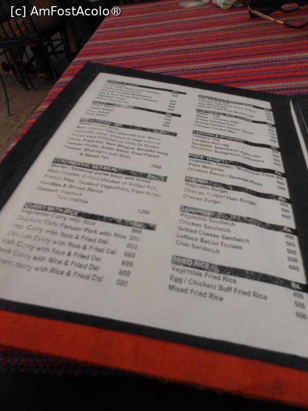 [P17] Bhaktapur - New Watshala Garden Restaurant din Durbar Square. Încă o filă din meniu.