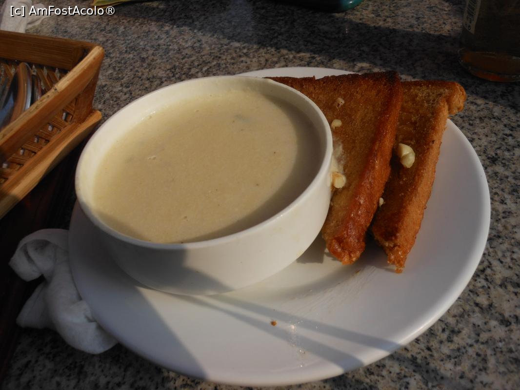 [P14] Bhaktapur - New Watshala Garden Restaurant din Durbar Square. Supa cremă de pui. Mai târziu a sosit și pâinea.