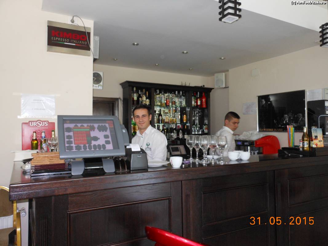 [P03] Breaza - Restaurant Lac de Verde, barul, personalul şi parola pentru internet afişată la vedere.
