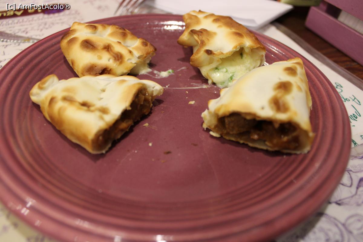 [P32] Buenos Aires, Restaurantul La Aguada, Empanada cu Carne tocata cu cuțitul și, în spate, Empanada Gauchita cu brânză Roquefort și mozzarella, porția mea