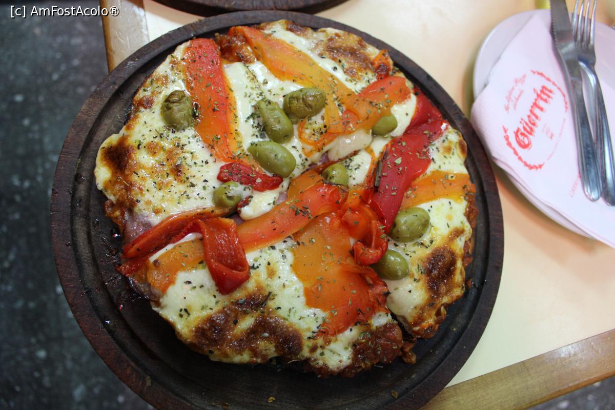 [P14] Buenos Aires, Pizzeria Güerrín, Pizza Especial Güerrín cu mozzarella, jambon, ardei roșu și măsline, medie