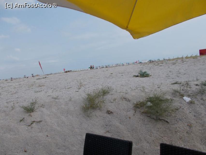 [P20] Așa se vede plaja de la mesele de pe terasă. Malul de...ce-o fi fost, nu are protecție spre terasă.