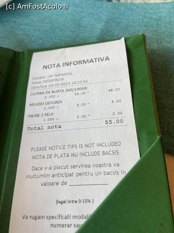 [P11] Complexul Alpina Casi - nota de plată de la prânz