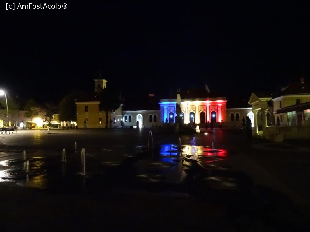 [P02] Monuemntul Unirii văzut noaptea - pe bulevardul pietonal care se deschide în spatele lui se află pizzeria Erol II.
