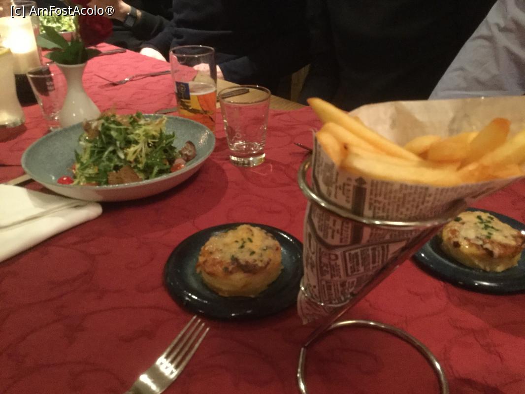 [P21] In cornet erau cartofii prajiti iar ceva mai in spate o salata, si pe o farfuriuta micuta cartofii mei gratinati