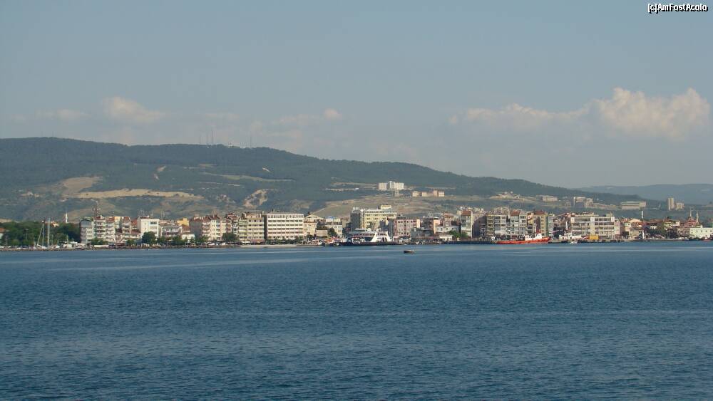 [P03] Orasul Canakkale, vedere de pe feribot. Traversarea Eceabat - Canakkale dureaza cel mai mult (15-20 minute), din cele 3 traversari ale stramtorii, asa ca ai timp sa admiri orasul in liniste.