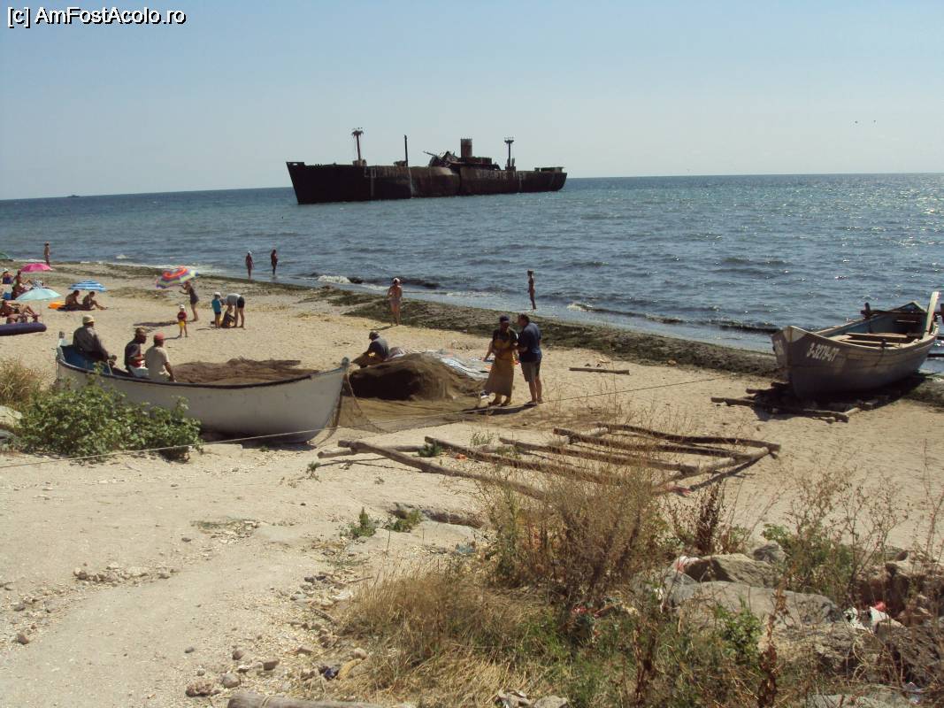 [P43] Epava Evangelia fotografiată din capătul nordic al plajei.