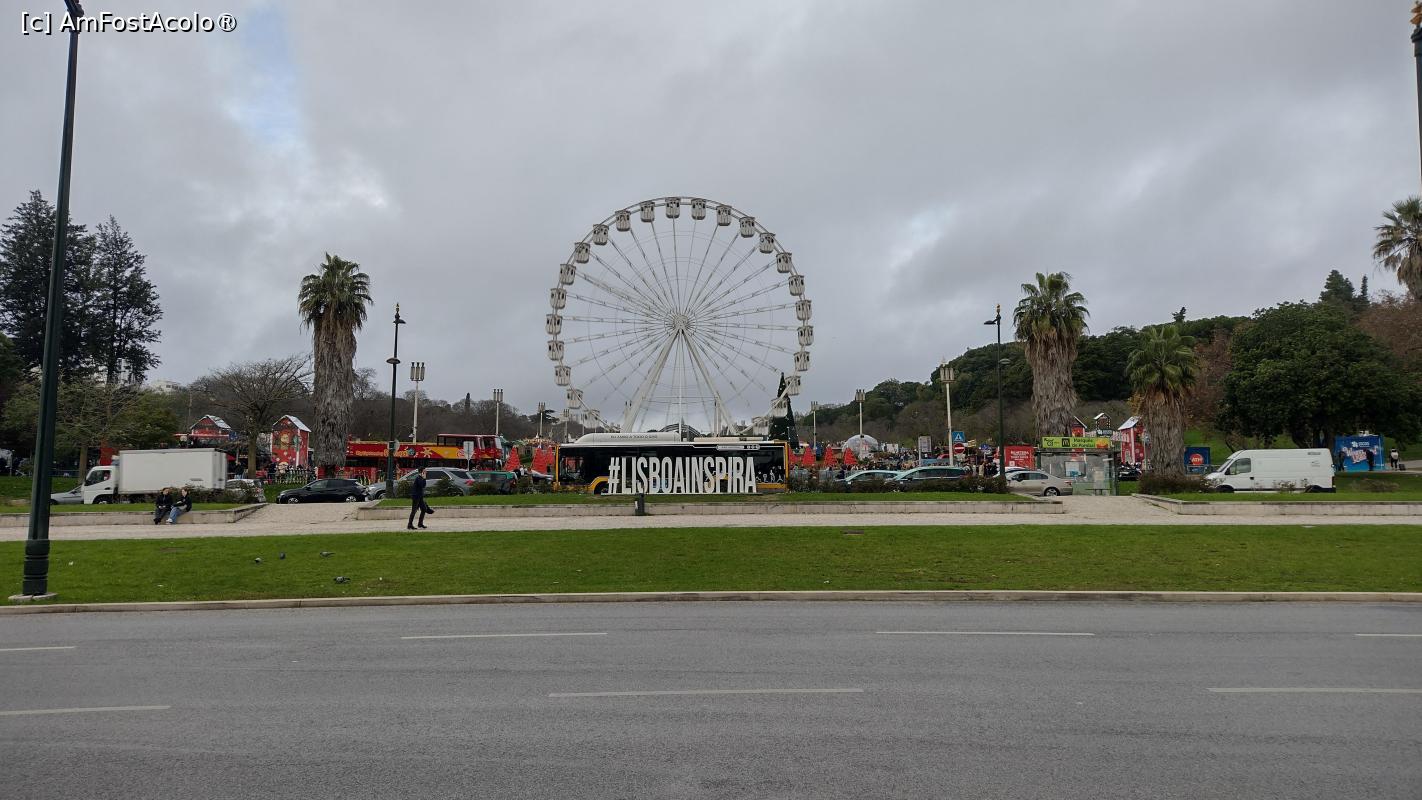 Târg de Crăciun organizat în Praca Marquese de Pombal, lângă ieșirea din Parque Edard VII.