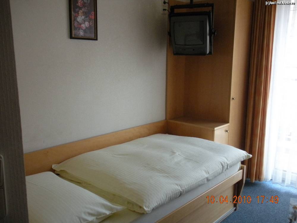Dupa ce am petrecut doua nopti la un hotel pretentios (in drum spre Munchen), la venire am gasit in vecinatatea acestuia un hotel-pensiune care initial nu mi-a inspirat prea multa incredere. Ma speria ideea ca Atrium se afla la ultimul nivel al unui bloc de apartamente... Nu mai vazusesm inca un astfel de sistem si imi faceam griji de conditiile de cazare.