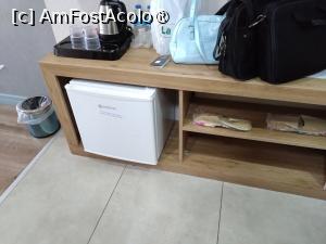 Hotelul este nou, cred că a fost terminat prin 2022. Pe booking spune că suprafaţa camerei este de 23 mp şi cred că aşa este, camera dublă nefiind foarte mare, dar nici mică. În cameră erau un minibar, un seif, papuci şi ustensile de făcut cafea şi ceai.