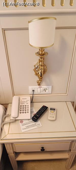 Enumăr dotările camerei: aer condiționat (utilizat atât pentru răcire, cât și pentru încălzire), tv lcd (prins pe perete), telefon fix (pentru legătură cu Recepția), veioze fixate în tăblia patului, minibar (cu lichide, gustări și dulciuri – contra cost). Alte facilități: întrerupătoare multiple lângă pat, seif, halate de baie, pahare de sticlă. Am găsit papuci de unică folosință, prosoape albe (toată gama), trusă de cusut, consumabile la baie.