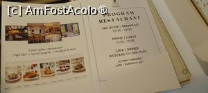Mic dejun și cină. Prima masă a dimineții s-a desfășurat în salonul de la parter, care se continuă cu o terasă închisă și încălzită (în anotimpul rece). Pe două laturi sunt amplasate blaturile cu produse, calde și reci, precum și aparatele de suc/cafea/apă fierbinte. Micul dejun a fost suficient pentru a începe o nouă zi cu spor și voioșie. Ne-au fost oferite: ouă (gătite în două variante + fierte), cârnați și șuncă prăjite, crochete de legume și brânză, crenvurști, mezeluri de mai multe feluri, brânzeturi, măsline, legume, salate, iaurt, cereale, gem și unt etc. Au fost și produse dulci: croissante mici, negresă, o prăjitură cu mere cred, fructe. Erau prezente mai multe aparate de cafea și dozatoare de suc, filtru cu apă fierbinte, prăjitor de pâine. Micul dejun a fost identic în ambele dimineți.