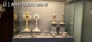 Spațiul expozițional este la etaj, unde sunt mai multe încăperi de dimensiuni diferite. Pentru majoritatea, se trece din una în alta. Primele încăperi prezintă o multitudine de obiecte cu caracter religios, oarecum asemănătoare cu ceea ce am văzut în alte muzee similare, ultimul fiind la Catedrala din Gozo. Aflu, însă, că unele din acestea datează din secolul al XIV-lea, dar vârsta celorlalte acoperă perioada până la începutul secolului XX.