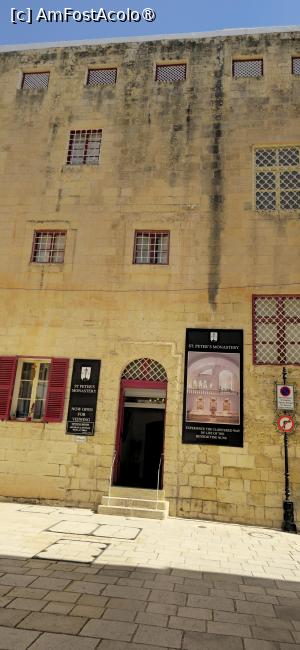 Chiar în piațetă ne iese în față un prim potențial obiectiv. Este vorba despre Mănăstirea Sfântului Petru. Nu era pe lista noastră, dar un anunț de lângă ușă ne informează că „acum se poate vizita” . Intrarea mă miră. Este foarte departe de imaginea mea pentru intrarea într-o mănăstire. Este o ușă simplă, dreptunghiulară, într-un perete perfect drept, anost, al unei clădiri relativ mare, cu două etaje.