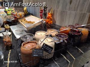 Setul pentru prepararea ceaiului și cafelei era așezat pe birou deasupra minibarului și conținea cană electrică pentru încălzit apa, pliculețe de ceai și zahăr, espressor Lavaza cu capsule, toate completate zilnic. Bonus am avut și o cutiuță cu macarons, care, din păcate, nu mai fost completată.