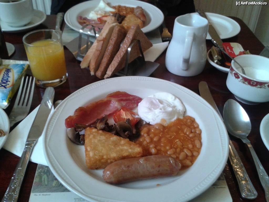 [P11] Celebrul scottish breakfast: toast, haggis, poached egg, bacon, iahnie delicioasă, ciuperci şi un pic de roşie la grătar şi triunghiul din cartofi: yammy!